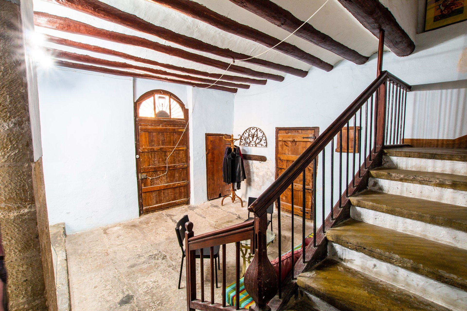 Cliente comprador exento de honorarios adicionales. Espectacular casa destinada a vivienda de aproximadamente 600m2, en el corazón de Caspe, cuya construcción data del S.XVII, con posteriores modificaciones. Se trata del edificio destinado originalmente a la hospedería del Convento de los Franciscanos, que se encuentra al otro lado de la calle. Se trata de un edificio en esquina con una exquisita composición de los huecos, con una planta baja de sillares de piedra y plantas alzadas con bonitos motivos pintados sobre los paramentos. El edificio principal cuenta con cinco alturas en total (sótano, planta baja y tres plantas alzadas). En el sótano tenemos una bodega, dónde se puede encontrar el acceso a un pasadizo, ya condenado, que unía la hospedería con el convento bajo la calle. En planta baja dispone de un fantástico acceso peatonal con un espacio destinado a oficina de servicios. También se encuentra un gran garaje con espacio para varios vehículos. A la parte trasera se abre un jardín con un edificio auxiliar de tres plantas destinado originariamente a cuadras y granero, actualmente para reformar. En el piso primero está la planta noble, con una preciosa sala de estar, tres dormitorios, dos baños, cocina y varios espacios auxiliares. La planta segunda cuenta con otra vivienda, con cocina, comedor, baño y tres dormitorios, y finalmente, en planta tercera hay varios espacios de almacenaje y un espacio destinado a estudio. El edificio ha sido habitado continuamente en las últimas décadas y la cubierta ha sido reformada en los últimos años. Encontramos la financiación que necesitas.